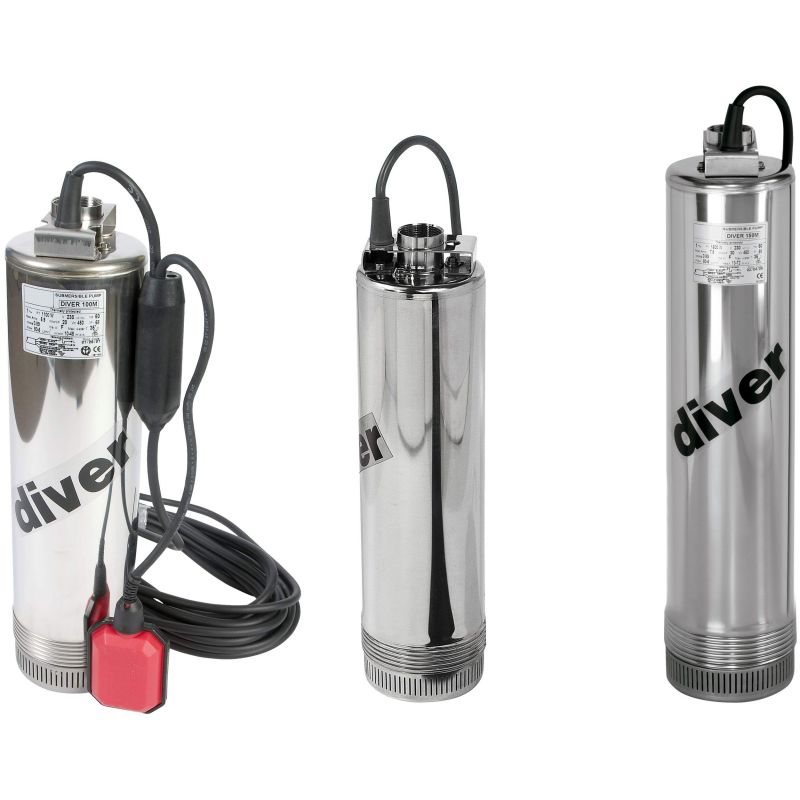 Bomba sumergible doméstica para pozos de 6 mínimo, para trasiego de agua limpia con un contenido máximo de 60 gr./m3 de arena.