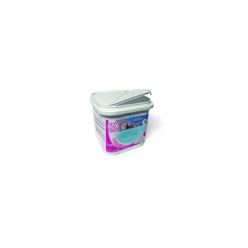 Tricloro granulado de disolución lenta con un 90% de cloro útil, altamente estabilizado, para el tratamiento y desinfección del agua en piscinas.