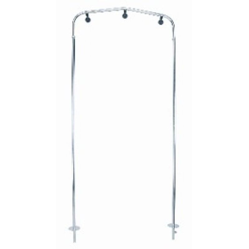 Diseñado para la entrada de piscinas públicas. Fijación al suelo medinate pletinas. Construido en acero inoxidable AISI-304. Un arco con 3 rociadores superiores, anchura 1,20 m y una altura máxima de 2,5 m. Un arco con 5 rociadores, anchura de 2 m y una latura máxima de 2,5 m.Destinatario :