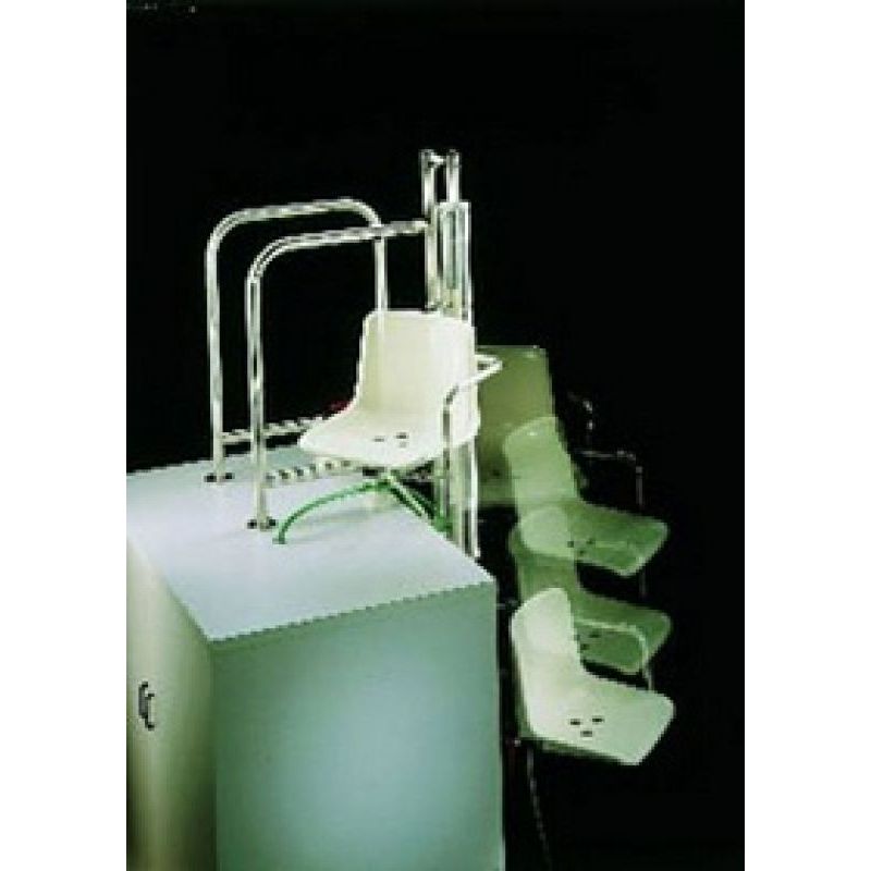 Para piscinas terapéuticas y como alternativa a la escalera, para aquellas personas discapacitadas que necesitan estar sentadas al efectuar su entrada y salida del vaso de la piscina. Se compone de una estructura en acero inoxidable AISI-316 en la que se adapta el mecanismo hidráulico donde se soporta el asiento y lateralmente una escalera válida para el monitor.Para que el mecanismo hidráulico funcione, es necesario una toma de agua de la red con una presión mínima de 3,5 kg/cm2.