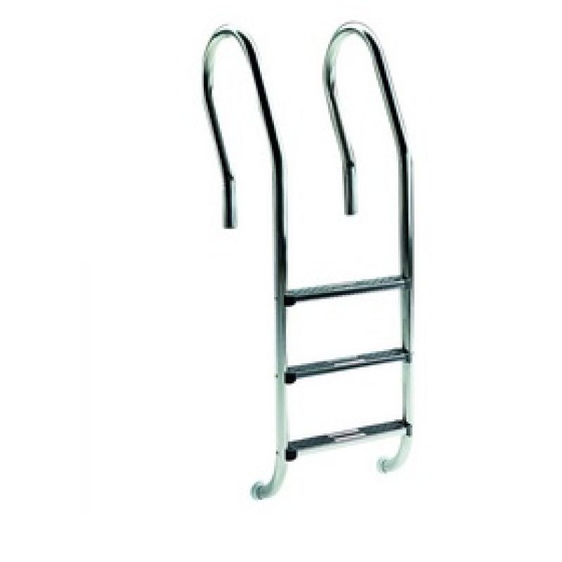 Escaleras con pasamanos para piscinas enterradas, fabricadas en tubo Ø 43 de acero inoxidable acabado pulido brillante. Peldaños en acero inoxidable y plástico. Su cuidado diseño garantiza seguridad contra todo tipo de deslizamientos o cortes. Suministradas con anclajes de fijación, previstos para conexión a toma equipotencial.Destinatario :