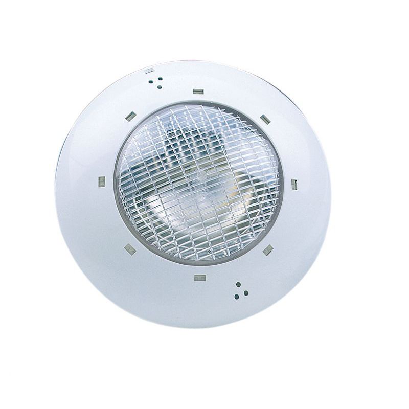 Fabricado con materiales plásticos inalterables. Color blanco. No necesita nicho para su instalación, se fija a la pared mediante cruz de plástico reforzado, tuercas, tornillos y juntas. Suministrado con 2,5 m de cable. Lámpara halena de 100 W y 12 V. Suministrado sin transformador. Disponible con embellecedor de plástico ABS o Inox.Destinatario :