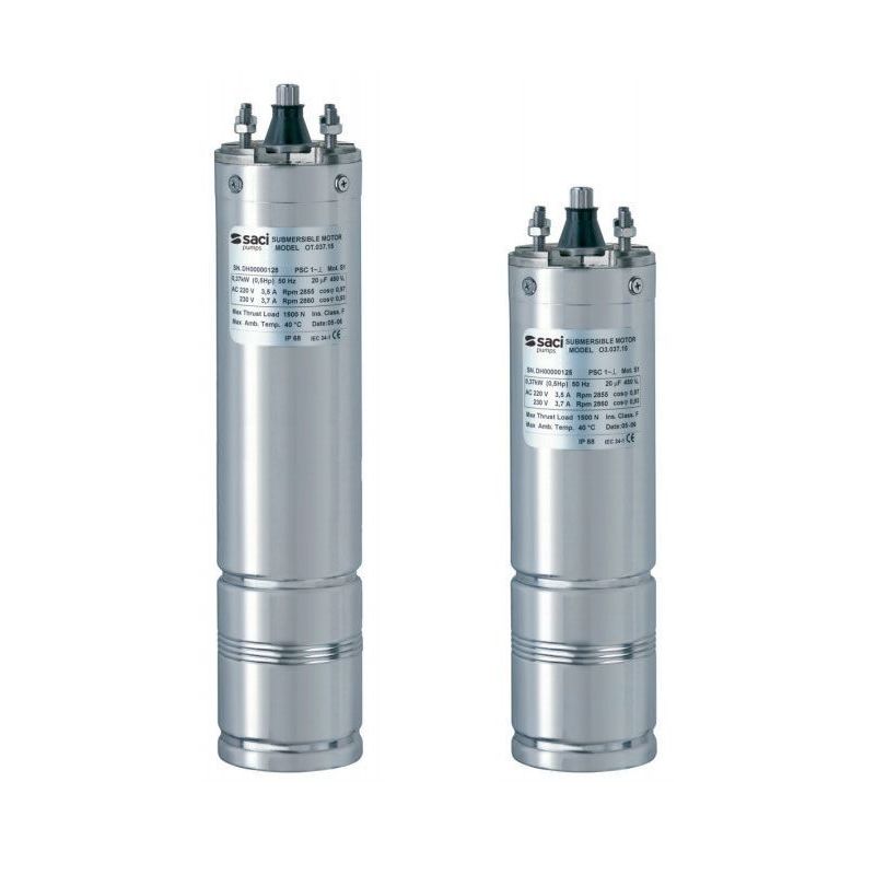 Motores eléctricos SACI para bombas sumergibles con acoplamientode 4" y también de 6", 8" y 10".