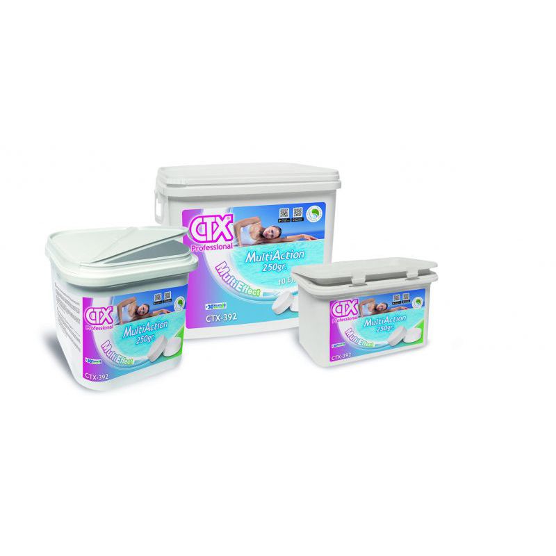 Tratamiento de mantenimiento: Con el pH del agua ajustado, añadir 1 tableta de CTX-392 MultiAction 250gr. por cada 20 m3 de agua 7 o 10 días.