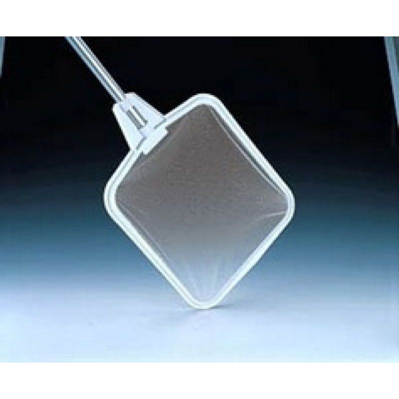 Soporte en polipropileno color blanco y tela en poliéster color blanco. Mango de aluminio fijado a presión.