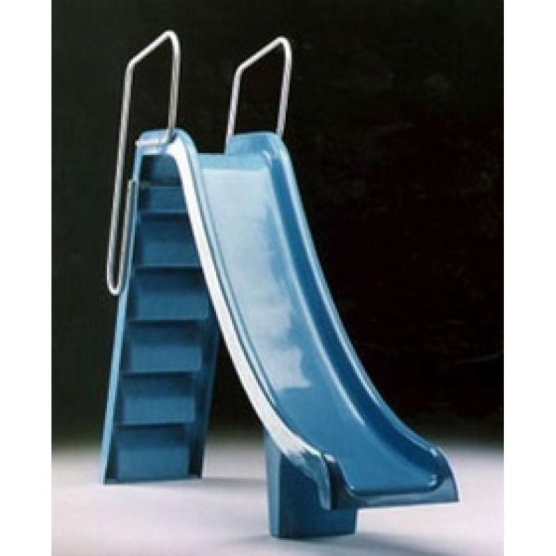 Pista y escalera en poliéster y FV color azul claro. Barandillas en aluminio pintado blanco. Equipado con toma de agua para facilitar el deslizamiento. Se suministra con anclajes.Destinatario :
